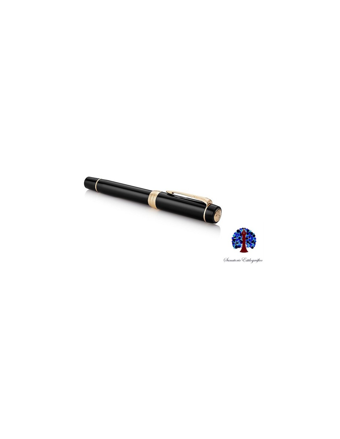 Duofold is a worthy heir to his illustrious predecessors and undoubtedly a living icon. Made with precious resin in solid black velvety with gold-plated finishes of 23K clearly noticeable.