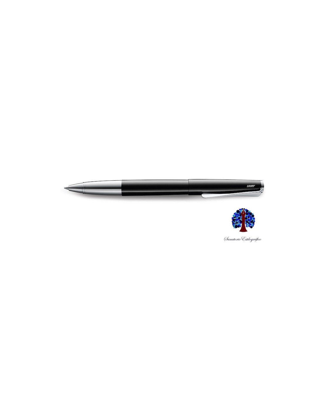 The rollerball Lamy studio is a stainless steel metal writing instrument finished in glossy black lacquer, lacquered in high quality, applied in two layers of colored lacquer, and with chrome handle of intense brightness. Clip in chrome metal and with propeller-shaped design. Replacement of liquid ink.