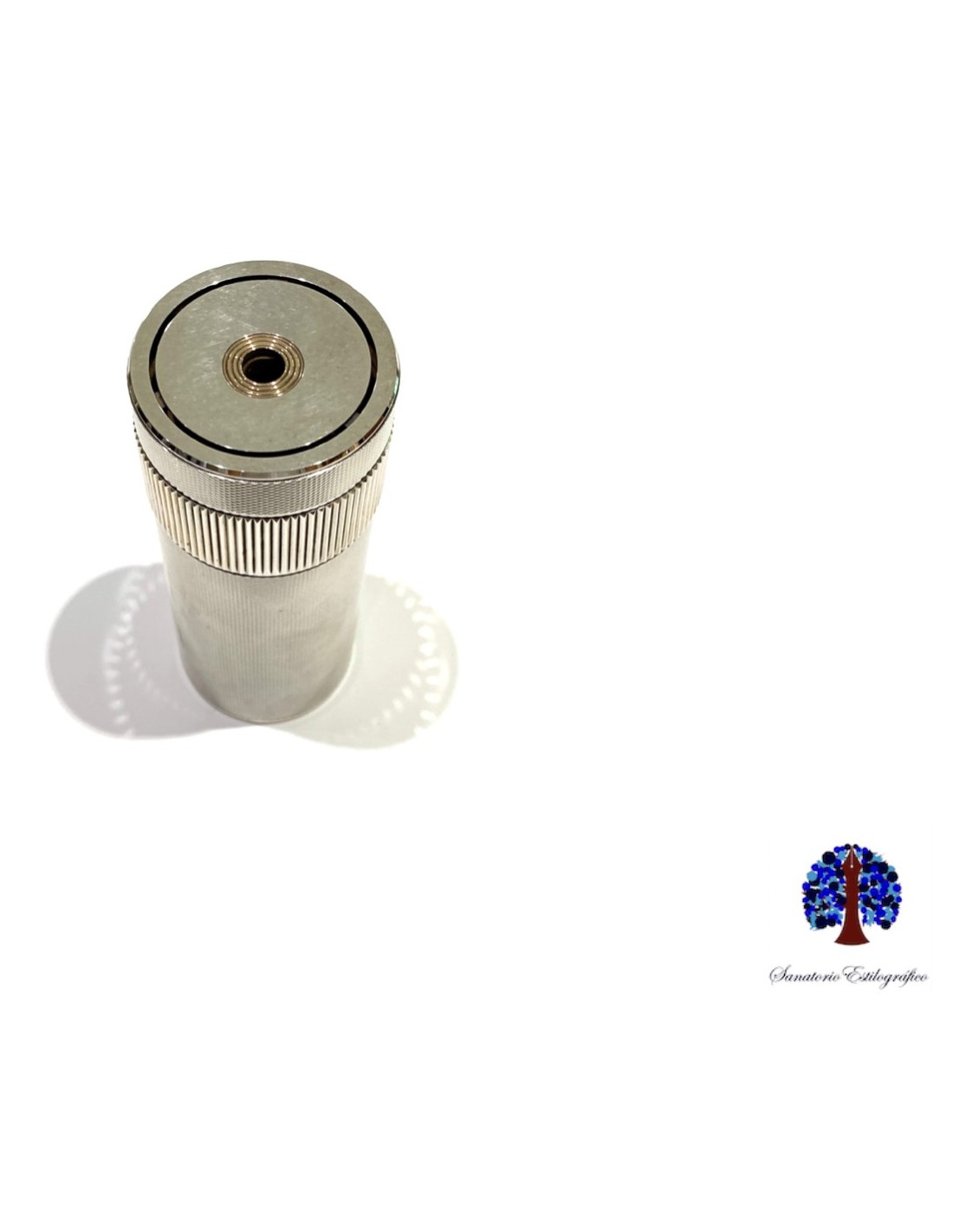 Silver table lighter with twist mechanism.